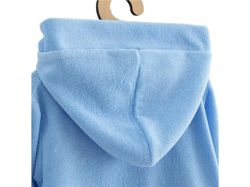 Praktický a kvalitný detský župan s kapucňou New Baby. Župan je vyrobený z príjemného a hrejivého froté materiálu. Kapucňa chráni mokrú hlavičku pred chladom a mäkký, teplý materiál je ideálny pre citlivú detskú pokožku. Detský župan sa zaväzuje sa na všitý opasok. Dieťa opasok nestráca a nezavadzia pri chôdzi. Ďalšou výhodou nášho županu sú hlbšie vrecká pre potreby dieťaťa. Je Ideálny nielen po kúpeli, ale aj po kúpaní v bazéne či v mori. Rozmery sú uvedené na poslednej fotografii. Zloženie: 100% bavlna. OEKO-TEX STANDARD 100. 240g/m2.Dodatočné parametre