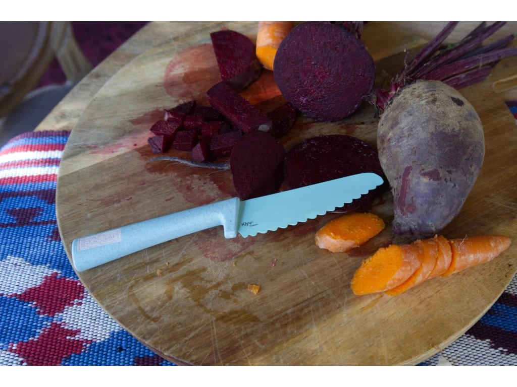 Je navrhnutý pre deti od 3 rokov, ktoré už majú dostatočnú zručnosť na prácu s nožom a sú pripravené na väčšiu presnosť, kontrolu a samostatnosť. Čepeľ je funkčná a efektívna na krájanie bežných surovín, pričom je nôž navrhnutý s dôrazom na bezpečné používanie – vždy však pod dohľadom dospelej osoby.