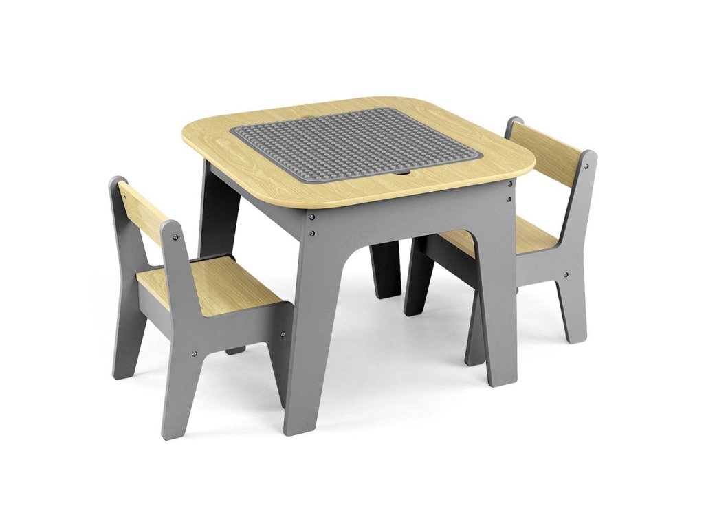 Set Olaf Blocks sa vyznačuje jedinečnou doskou stola – jedna strana je prispôsobená pre stavebné kocky, vďaka čomu je stolík ideálnym základom na stavanie. Druhá strana je hladká a ideálna na kreslenie, písanie alebo iné tvorivé aktivity. Doska je odnímateľná a pod ňou sa nachádza priestranný úložný priestor, ktorý uľahčuje uskladnenie hračiek, kociek alebo výtvarných potrieb, čo pomáha udržiavať poriadok.
