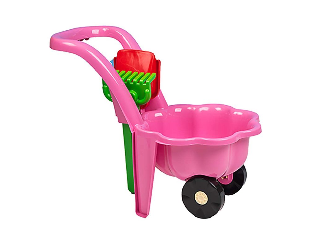 Detský záhradný fúrik s lopatkou a hrabličkami BAYO Sedmokráska ružový