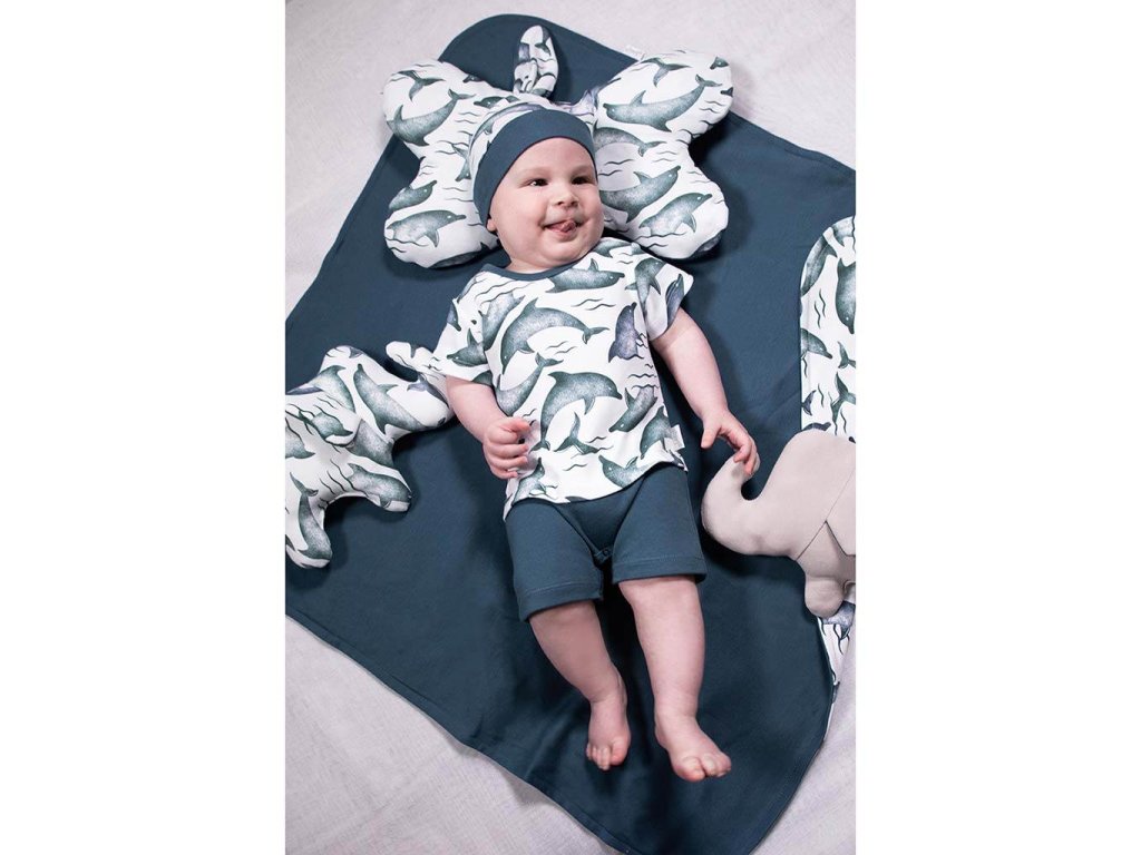 Krásna bavlnená dojčenská čiapočka-šatka Nicol Dolphin. Čiapočka je ušitá v štýle šatky s pružným lemom s potlačou delfínov. Vďaka príjemnému a kvalitnému materiálu sa bábätko bude cítiť veľmi príjemne a pohodlne. Zloženie: 100% bavlna.Dodatočné parametre