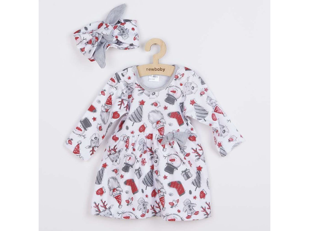 Dojčenské bavlnené šatôčky s čelenkou New Baby Christmas, veľkosť 56 (0-3m)