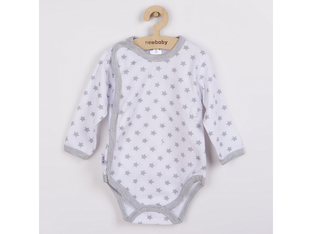 Dojčenské body celorozopínacie New Baby Classic II sivé s hviezdičkami, veľkosť 56 (0-3m)