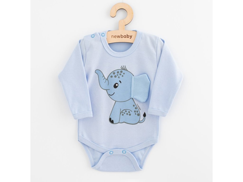 Dojčenské body s dlhým rukávom New Baby Happy Elephant blue, veľkosť 74 (6-9m)