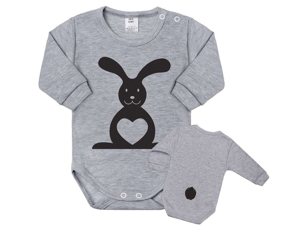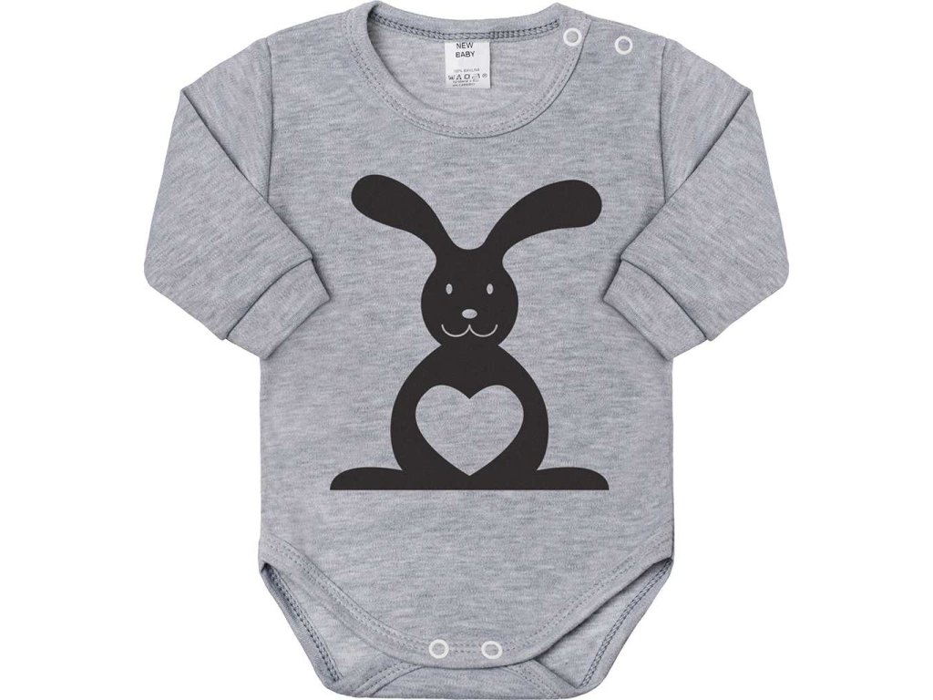 Dojčenské body s dlhým rukávom New Baby Zvieratko Zajačik sivé, veľkosť 50