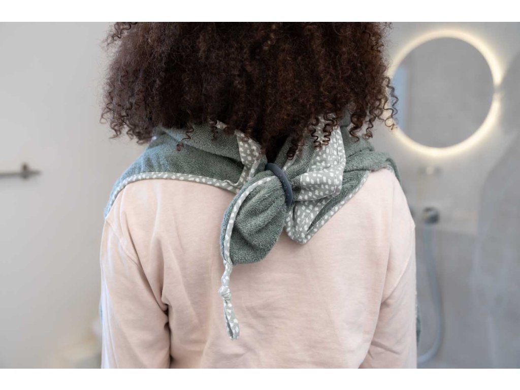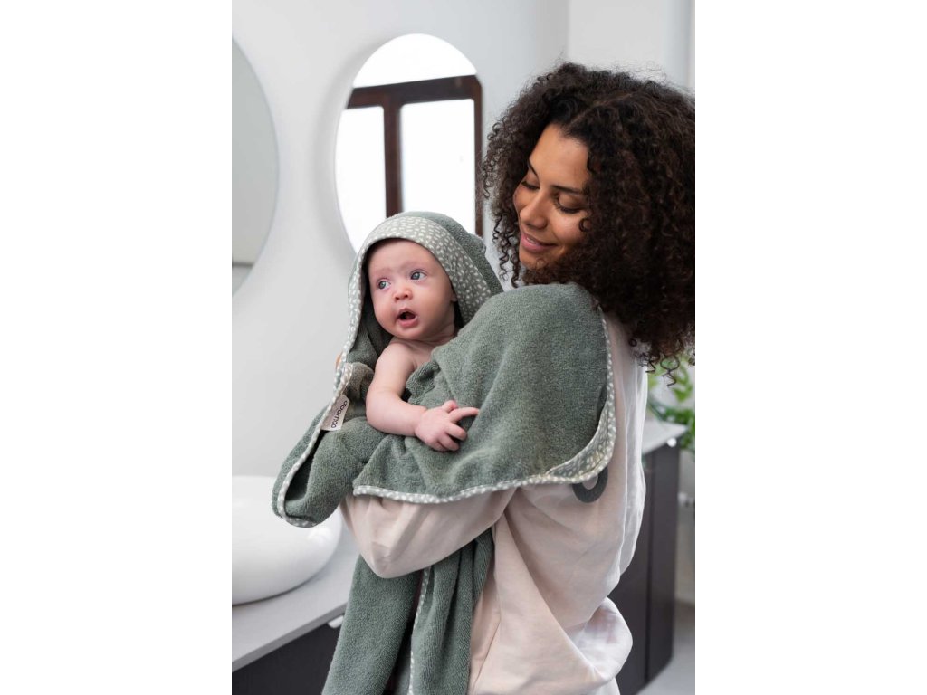 Uterák Doomoo Dry&Play je dostatočne veľký, aby sa do neho po kúpeli zababušili aj väčšie deti. Je vyrobený z mäkkej organickej bavlny a má certifikát OEKO-Tex.