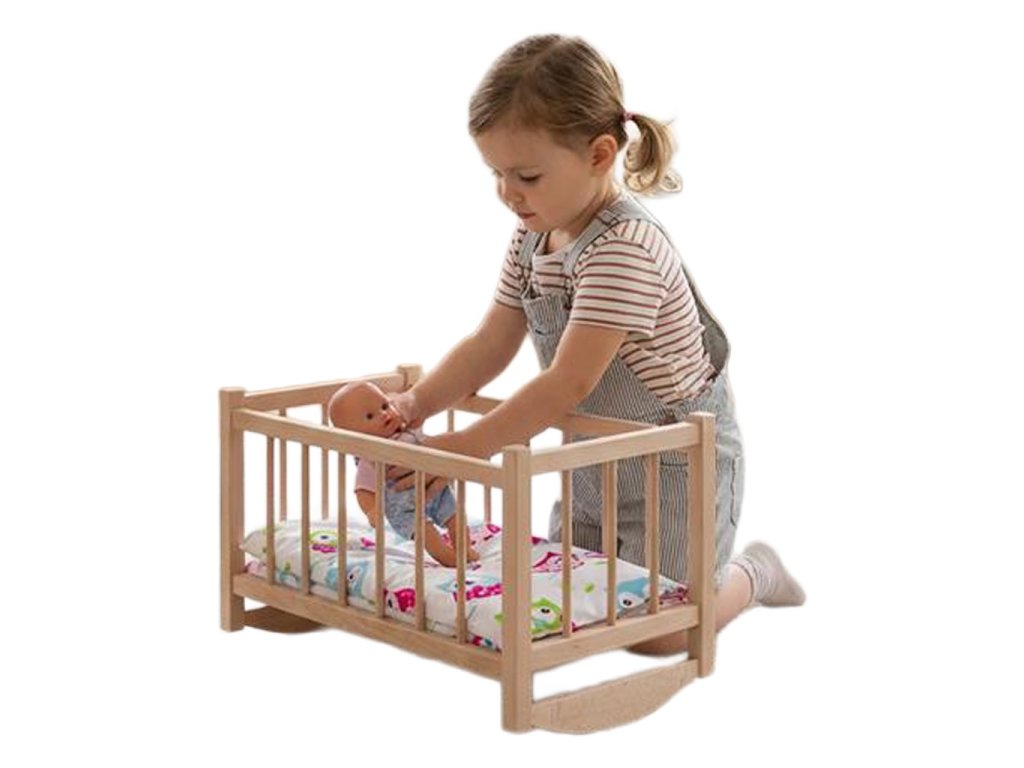 Drevená kolíska pre bábiky s posteľnou bielizňou – kúzelný doplnok detského sveta