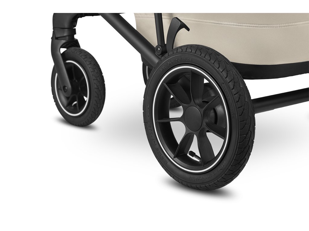 - vzduchom nahustené pneumatiky: ľahká navigácia v nerovnom teréne, poskytujúca maximálnu priľnavosť a pohodlie
