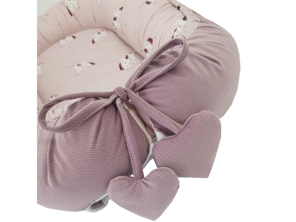 Multifunkčné hniezdo pre dieťa s okúzľujúcim vzhľadom poskytuje bezpečnosť a pohodlie pre spiace deti. Skvelá alternatíva k tradičným peřinkám a zavinovačkám. Praktickosť hniezda znamená, že môže byť použitý aj ako podložka na hranie. Hniezdo má vysoké okraje, ktoré uľahčujú položenie dieťaťa na boku, čo je dôležité najmä, keď dieťa má reflux.Nenoste dieťa v hniezde-neslúži na prenášanie dieťata!