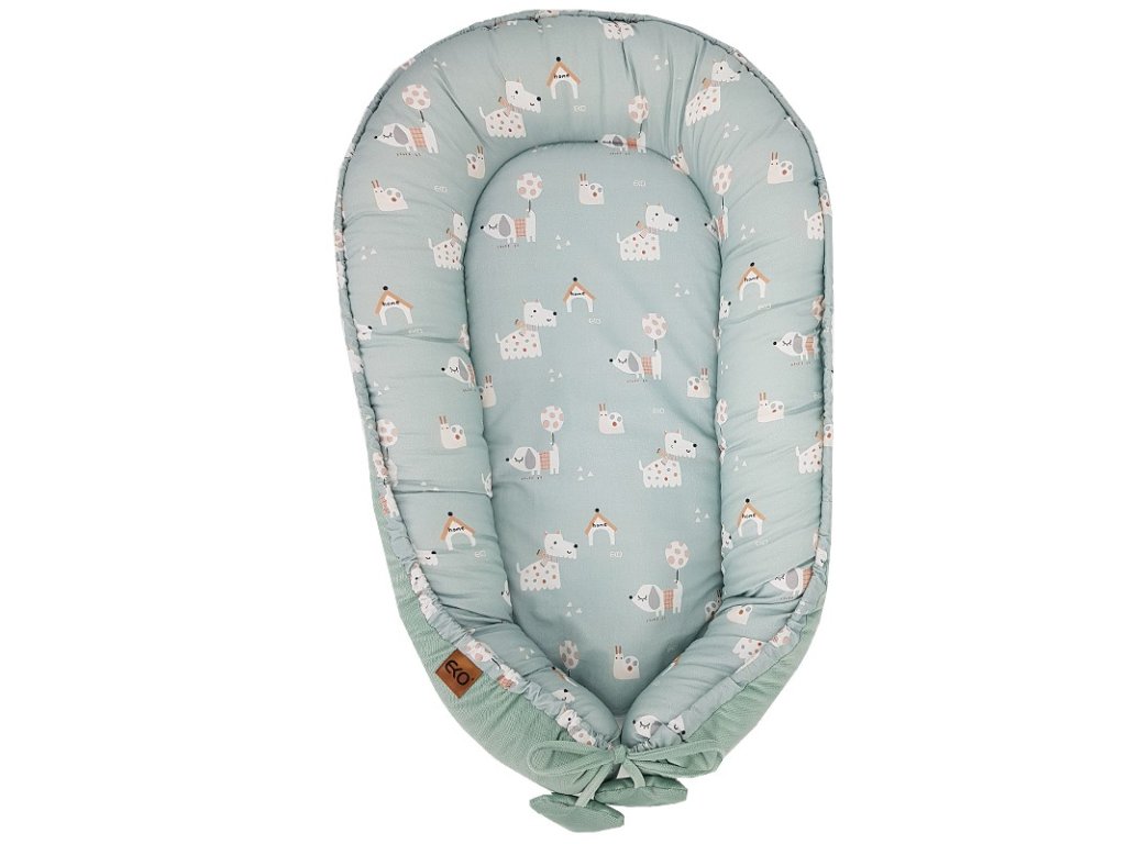 EKO Hniezdo pre bábätko VELVET Dogs Mint 90x60 cm