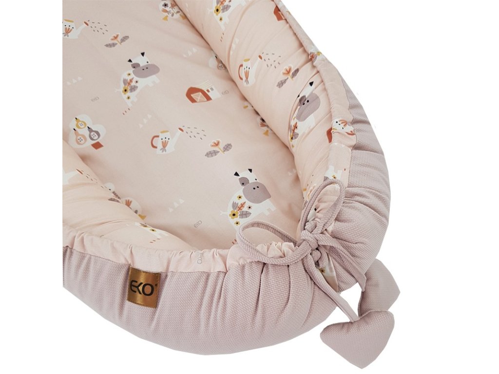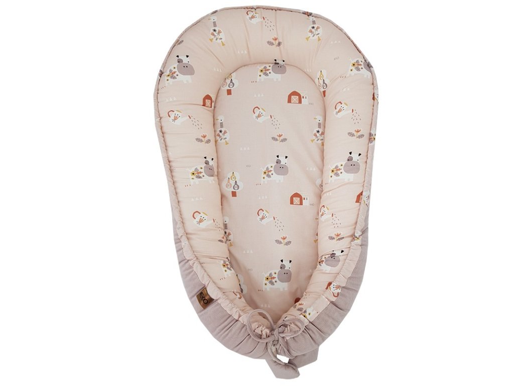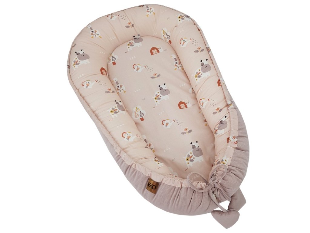 EKO Hniezdo pre bábätko VELVET My farm Powder pink 90x60 cm