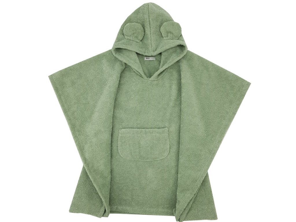 EKO Pončo bavlnené s kapucňou a uškami Olive green 75x120 cm