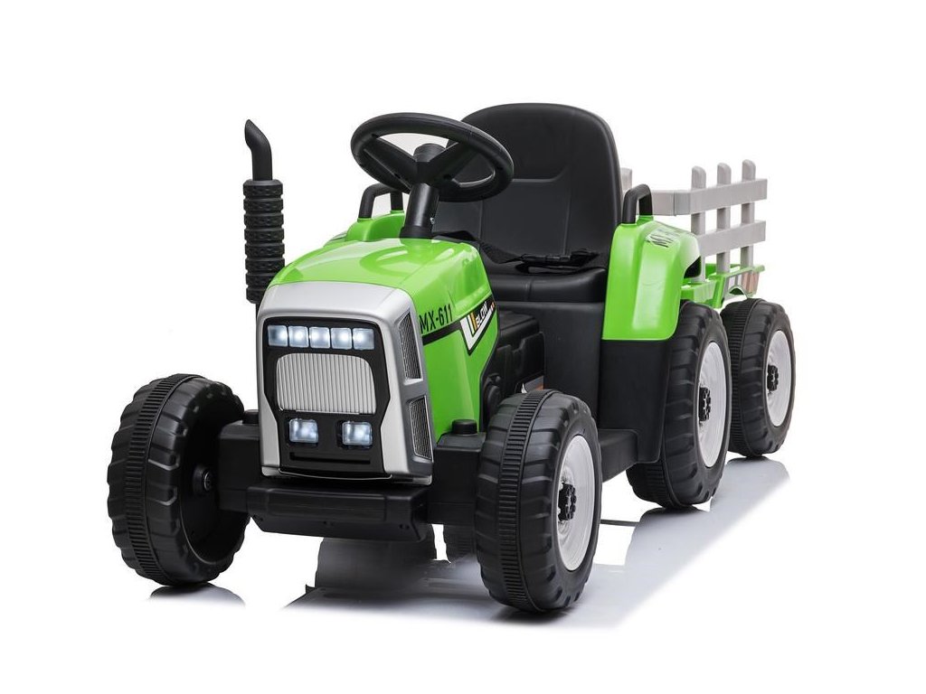 Detský elektrický traktor Baby Mix s výkonnými motormi 2x45 W prichádza v novom inovatívnom dizajne. Traktor má vlečku, pomocou ktorej môže dieťa prepravovať svoje hračky a poklady.