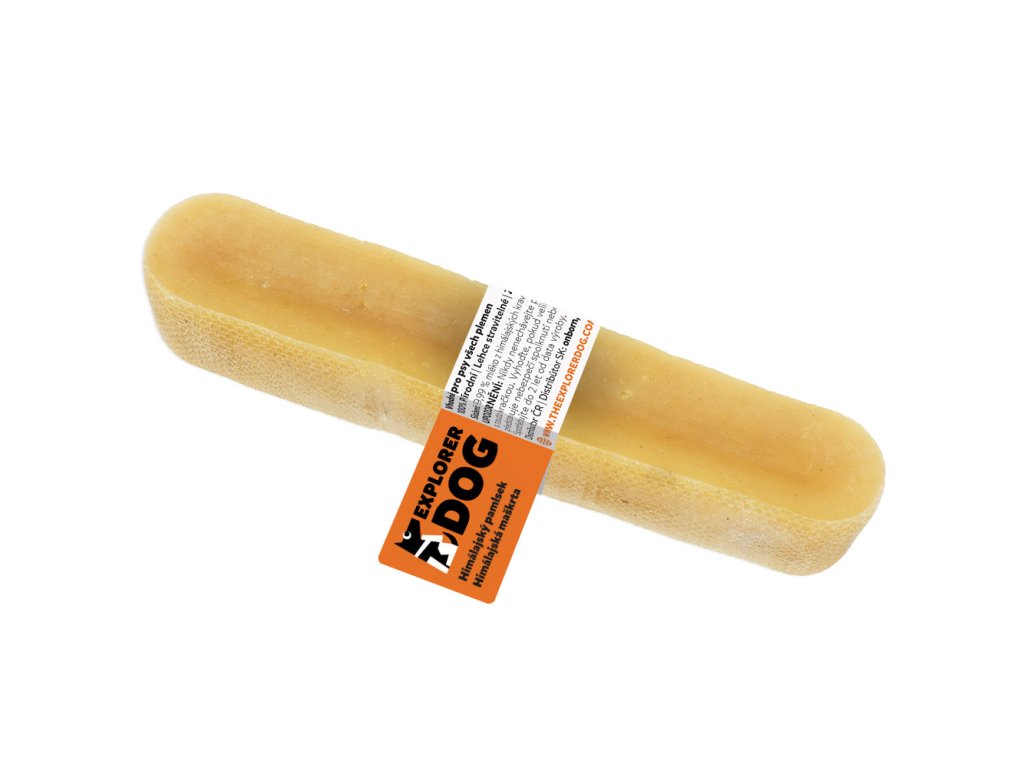 Dentálne tyčinky zo syra sú tvrdé, zdravé a prirodzené maškrty pre psov, ktoré podporujú dentálnu hygienu a pomáhajú odstraňovať zubný kameň. Tieto prírodné syrové maškrty sú ľahko stráviteľné, neobsahujú laktózu, lepok ani konzervačné látky. Vďaka svojmu zloženiu a tvrdosti sú ideálne pre každého psa, bez ohľadu na vek, veľkosť alebo plemeno.Himalájske syry, z ktorých sú tieto maškrty vyrobené, pochádzajú z mlieka voľne chovaných himalájskych kráv. Proces výroby začína hodinovým varením mlieka, aby sa odstránil všetok tuk a zaistila sa pasterizácia. Potom sa pridáva trocha soli a limetkovej šťavy (celkom len 0,01 %) na zrážanie. Nasleduje lisovanie syra po dobu 2-3 dní, aby sa odstránila vlhkosť. Bloky syra sú potom nakrájané na primerane veľké kusy a sušené v udiarni po dobu 20-30 dní, čo im dodáva tvrdosť a jemnú, dymovú chuť.