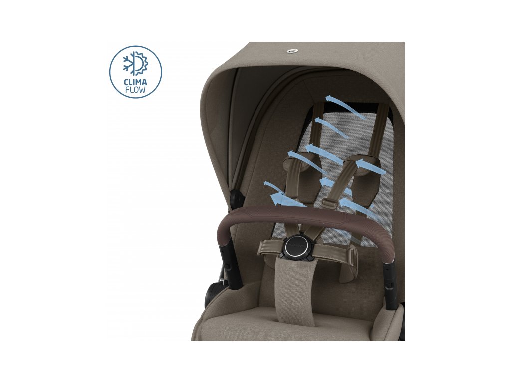 Športový sedák je vybavený odnímateľnou ultra polstrovanou podložkou z pamäťovej peny pre maximálne pohodlie dieťaťa pri sedení aj spaní. Počas horúcich letných dní je možné podložku úplne vybrať, opierka sedadla zo sieťoviny ClimaFlow maximalizuje ventiláciu a pomáha udržovať dieťa v tepelnom komforte. Sedák ponúka tri polohy opierky chrbta vrátane rovnej polohy pre prirodzené spanie a pohodlnú nastaviteľnú opierku nôh. 5-bodové bezpečnostné pásy s magnetickou prackou uľahčujú pútanie dieťaťa.