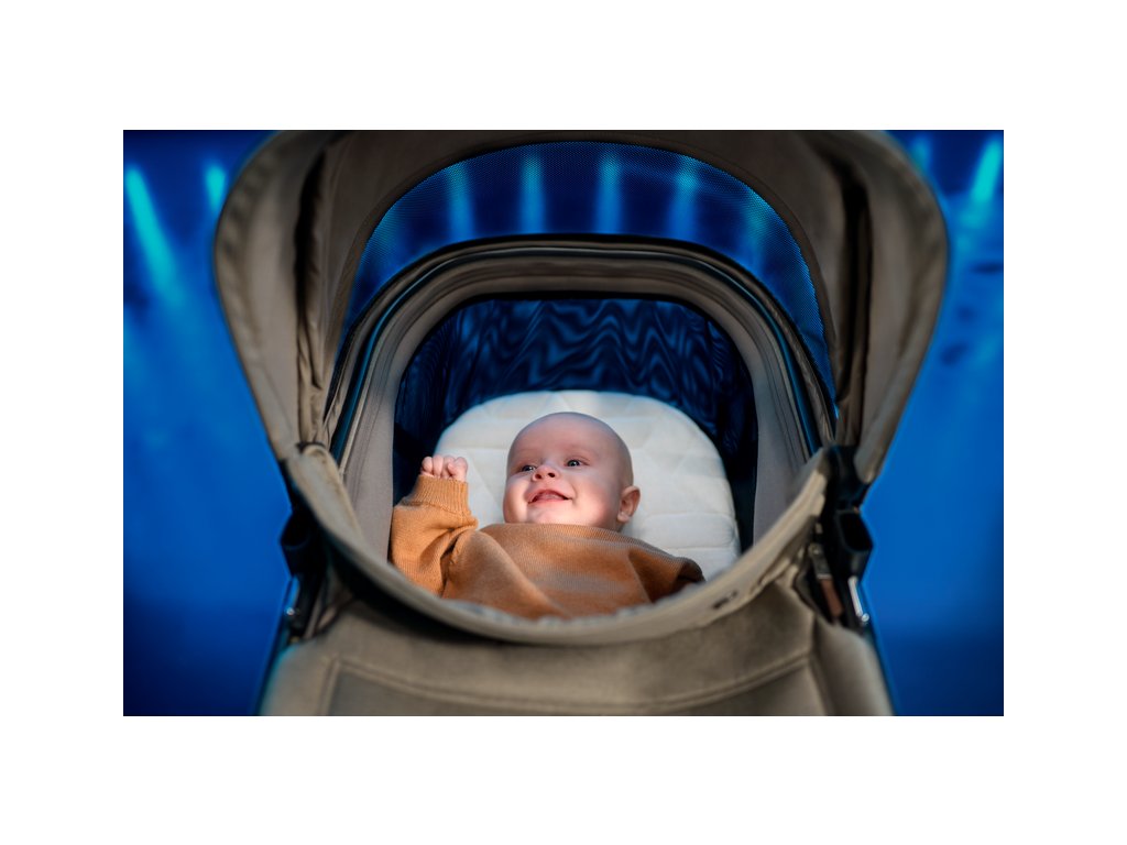 - Integrované vetracie okienko zo sieťoviny ClimaFlow v prednej časti vaničky aj v strieške pre udržanie príjemnej teploty vo vaničke počas teplých letných dní