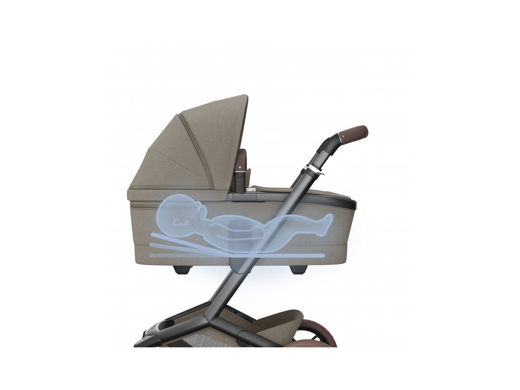 Priestranná vanička s obojstranným priedušným matracom z pamäťovej peny a ventilačným okienkom poskytne vášmu bábätku pohodlie pri spánku a optimálne vetranie aj počas teplých letných dní. Integrovaný systém SoothingSlope umožňuje jednoduchým spôsobom vytvoriť ľahko naklonenú polohu na spanie, ktorá pomáha minimalizovať riziko refluxu. Unikátny systém výškového nastavenia korbičky Close2Me ponúka 3 rôzne polohy vaničky podľa výšky rodiča. Už žiaden boľavý chrbát pri manipulácii s dieťaťom vo vaničke!