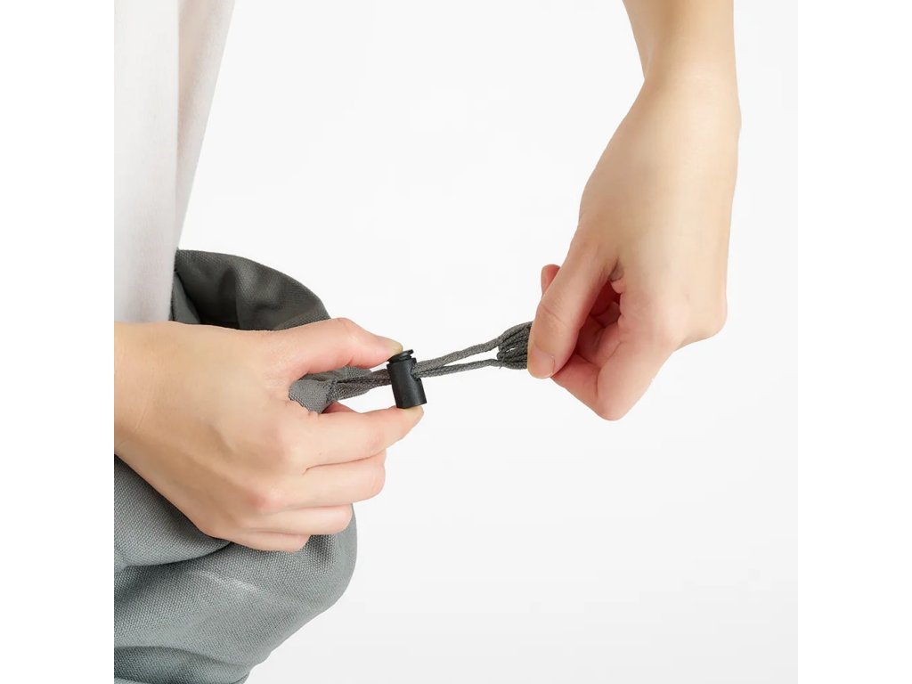 - Dvojitý bezpečnostný systém – vstavaný bezpečnostný popruh na pripnutie vodítka + sťahovacia šnúrka na okraji pre extra istotu.