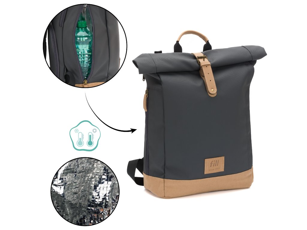 Batoh Berlin není jen designový, ale také velmi praktický. Rolltop uzávěr umožňuje plynule zvětšit objem batohu z 20 až na 25 litrů při plném otevření. Magnetické zapínání umožňuje rychlé a snadné otevření kožené přezky. Další praktický vstup se nachází na zadní straně batohu a umožňuje rychlý přístup k věcem uloženým na dně.