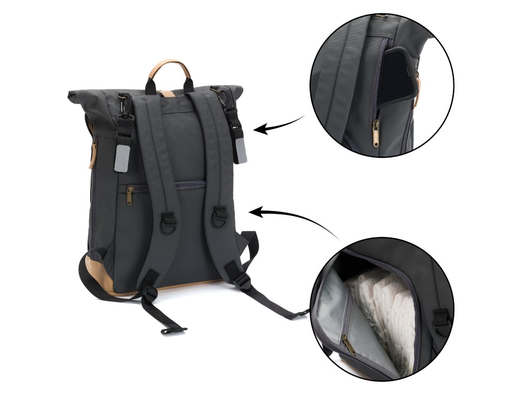 Přebalovací batoh Berlin v moderním rolltop provedení je stylovým a zároveň maximálně praktickým společníkem nejen pro přebalovací období. Nabízí všechny důležité funkce přebalovacího batohu, ale zároveň působí jako moderní, městský batoh, který budete rádi používat i dlouho poté.