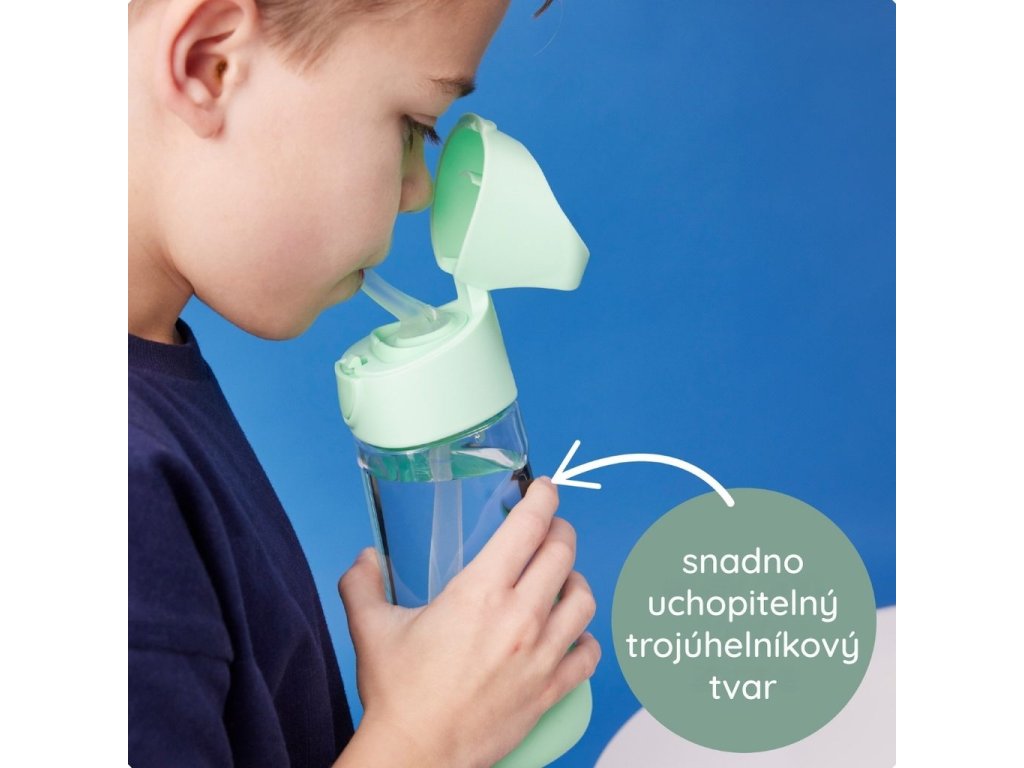 Ergonomický tvar s trojuholníkovou základňou padne skvele do drobných ručičiek vašich detí. Silikónová slamka dovolí piť z fľaštičky aj pri miernom naklonení a viečko má držadlo pre ľahké nosenie alebo zavesenie na batoh, kočík a pod. Fľaštička sa po ľahkom stlačení "tlačítka" ľahko otvorí. Spodná slamka fľaštičky je pevná. Náustok (horná časť slamky) je cca 5 mm od konca vybavený "ventilkom", ktorý zabraňuje samovoľnému vytekaniu tekutiny, ale fľaštička nie je výrobcom deklarovaná ako netečúca. Pri pití treba slamku ľahko zovrieť medzi jazykom a poschodím alebo perami a potom už len sať, ako z klasickej slamky.