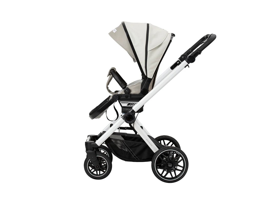 Díky ultrakompaktnímu složení o velikosti pouhých 71 × 58,5 × 32 cm lze kočárek složit i se sportovní nástavbou během pár vteřin. Je ideální na cestování i do menších zavazadlových prostor. Prémiová otočná kola s odpružením si bez problému poradí s jakýmkoli povrchem a ráfky v originálním AMG designu dodávají kočárku nezaměnitelný charakter.