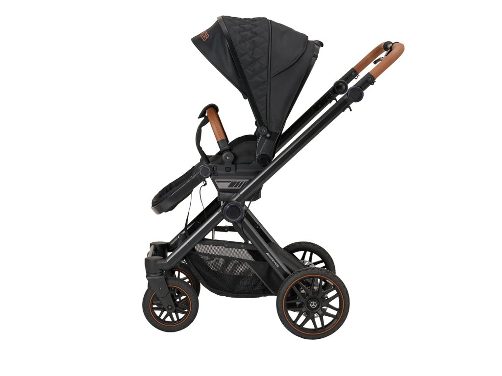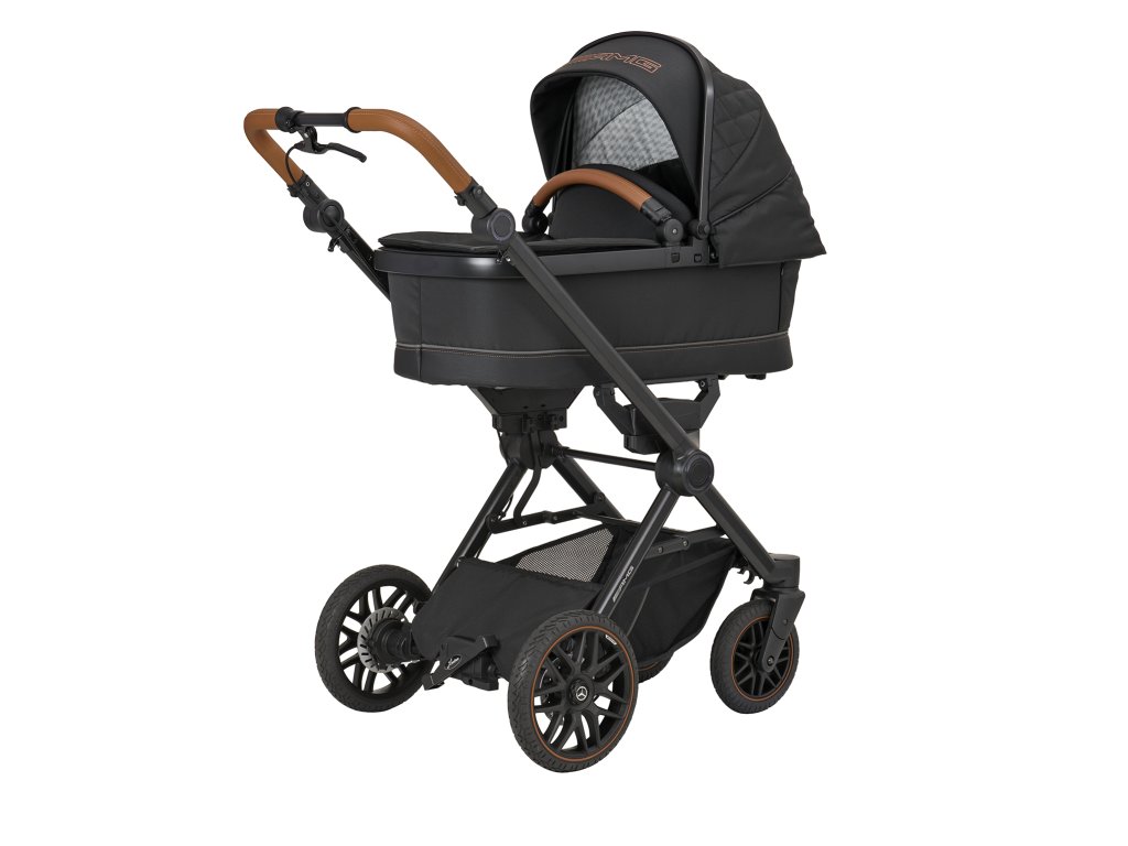 Díky ultrakompaktnímu složení o velikosti pouhých 71 × 58,5 × 32 cm lze kočárek složit i se sportovní nástavbou během pár vteřin. Je ideální na cestování i do menších zavazadlových prostor. Prémiová otočná kola s odpružením si bez problému poradí s jakýmkoli povrchem a ráfky v originálním AMG designu dodávají kočárku nezaměnitelný charakter.