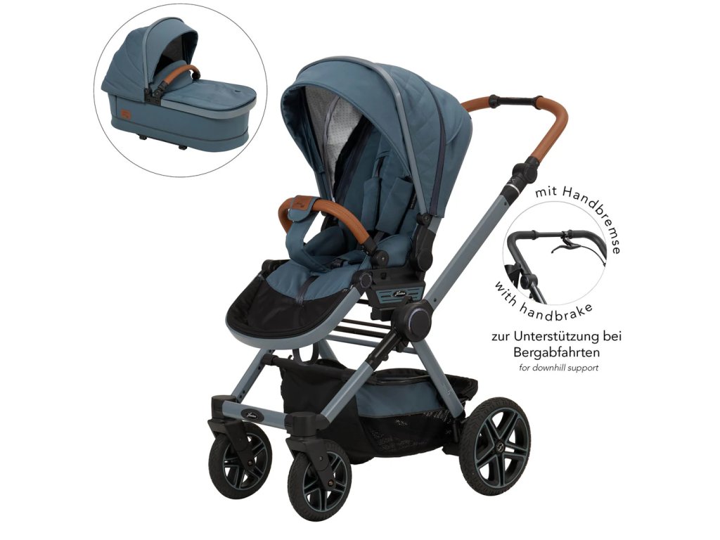 Velká kola kočárku (21,4 cm vpředu / 27,6 cm vzadu) zajišťují výbornou ovladatelnost a hladkou jízdu. Snadno tak projdete užšími místy, vejdete se do menších výtahů nebo v klidu projedete rušnými pěšími zónami, což v každodenním provozu oceníte.