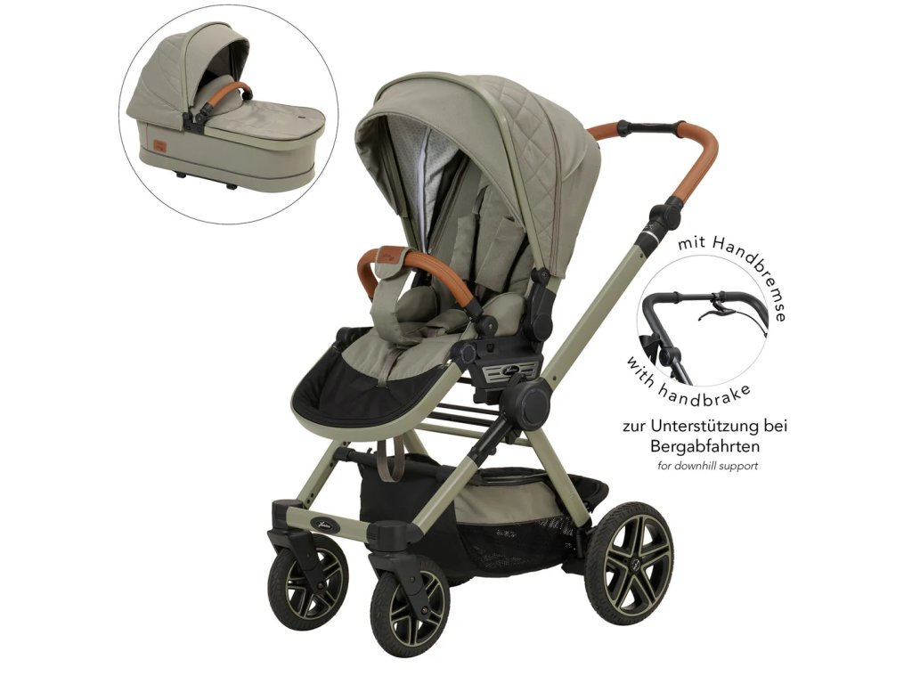 Velká kola kočárku (21,4 cm vpředu / 27,6 cm vzadu) zajišťují výbornou ovladatelnost a hladkou jízdu. Snadno tak projdete užšími místy, vejdete se do menších výtahů nebo v klidu projedete rušnými pěšími zónami, což v každodenním provozu oceníte.
