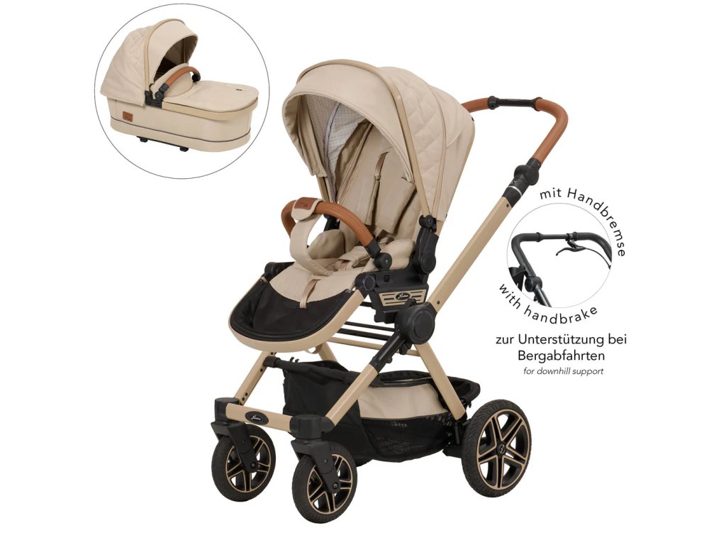 Velká kola kočárku (21,4 cm vpředu / 27,6 cm vzadu) zajišťují výbornou ovladatelnost a hladkou jízdu. Snadno tak projdete užšími místy, vejdete se do menších výtahů nebo v klidu projedete rušnými pěšími zónami, což v každodenním provozu oceníte.