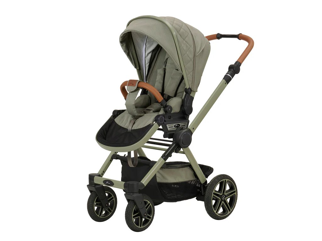 Velká kola kočárku (21,4 cm vpředu / 27,6 cm vzadu) zajišťují výbornou ovladatelnost a hladkou jízdu. Snadno tak projdete užšími místy, vejdete se do menších výtahů nebo v klidu projedete rušnými pěšími zónami, což v každodenním provozu oceníte.