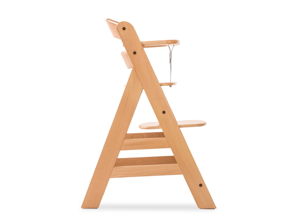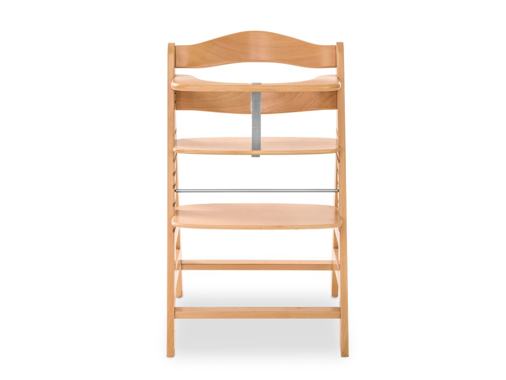 DREVENÁ VYSOKÁ STOLIČKA – BEZPEČNÁ A STABILNÁ // Všetko, čo vaše dieťa potrebuje, je súčasťou balenia. Roznožkový pás, 5-bodový bezpečnostný pás, ochranný oblúk a podložky pod nožičky zaručujú bezstarostné stolovanie.