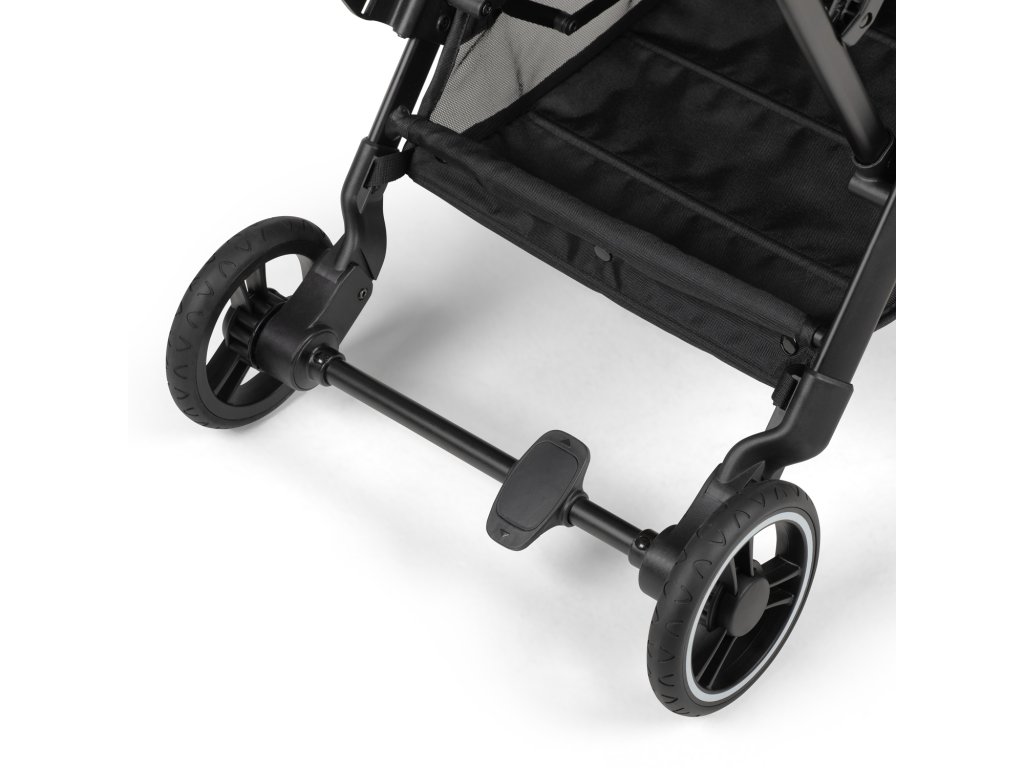 PREMIUM MATERIÁLY S KOŽOVÝMI DETAILMI // Kamkoľvek vás vaša cesta zavedie, kočík FLY N CARE vás nesklame! Kožové detaily na rukoväti a bezpečnostnej tyči dodávajú kočíku prémiový vzhľad, kamkoľvek idete. Zavesenie 4x4 zaisťuje mimoriadne pohodlnú jazdu.