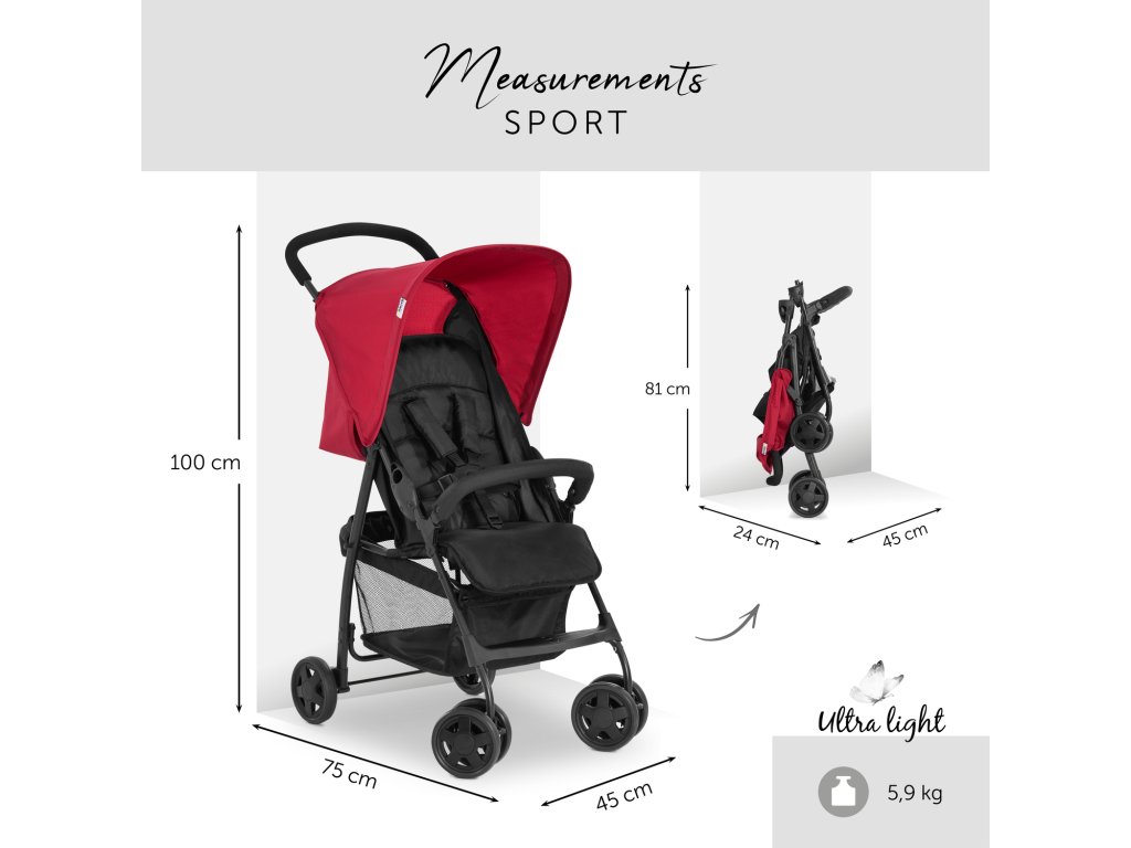 Ľahký a mimoriadne šikovný // Kočík Sport bude Vaším perfektným spoločníkom do všedných dní, na cestách alebo ako náhradné golfky pre prarodičia. Vďaka otočným a zaisťovacím predným kolesám ním budete bezchybne manipulovať.