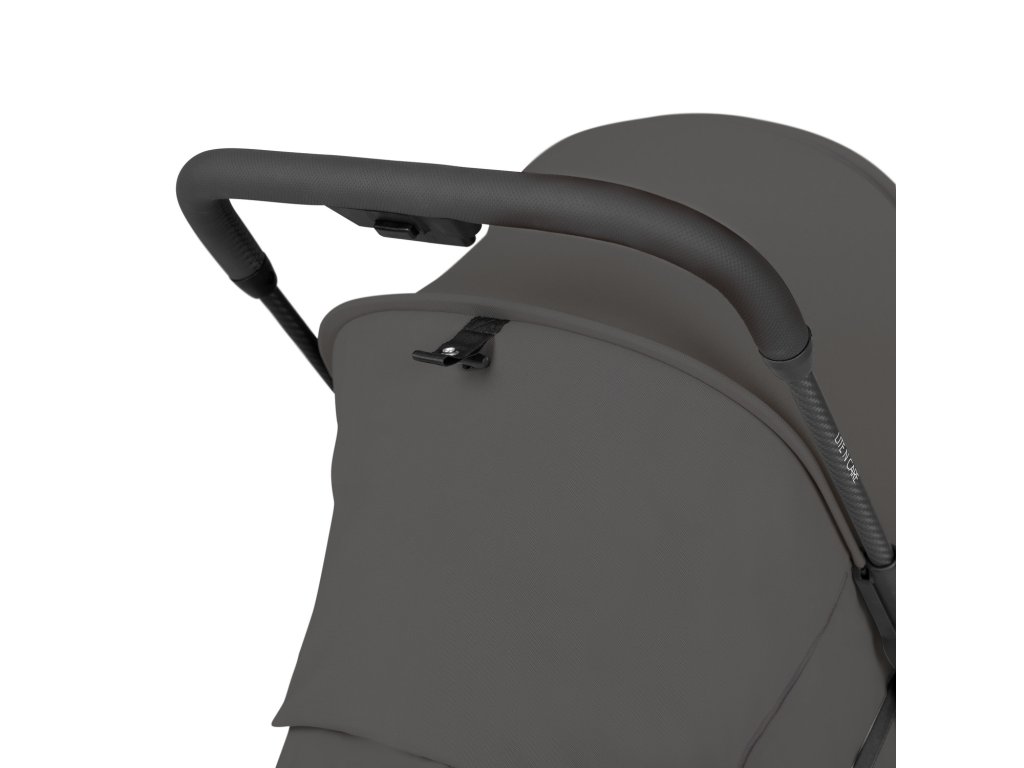 VYSOKOKVALITNÝ VZHLAD VĎAKA ELEGANTNÝM DETAILOM // Športový a elegantný: kombinácia vysokokvalitného rámu z uhlíkových vlákien a elegantného koženého vzhľadu rodičovskej rukoväti a ochranného oblúka vytvára moderný vzhľad, ktorý dokonale spája dizajn a kvalitu.