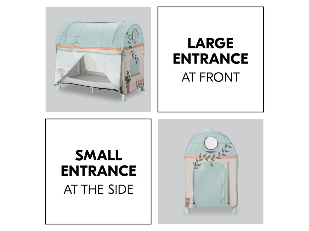 DOVNÚTRA A VON, ĽAHKO A RÝCHLO // Stan na postieľku je vybavený hneď dvoma vstupmi. Veľkým spredu a menším na boku, a tak si vaše maličké môže naplno užívať hry bez toho, aby potrebovalo vašu asistenciu.