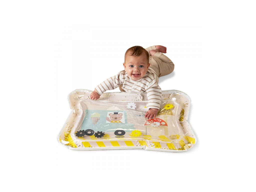 Premeňte čas na brušku vášho dieťaťa na dobrodružstvo plné zábavy a zmyslového skúmania! Táto mäkká vodná podložka s plávajúcimi hračkami zaujme každé bábätko a pomáha pri posilňovaní svalov aj rozvoji zraku a motoriky.
