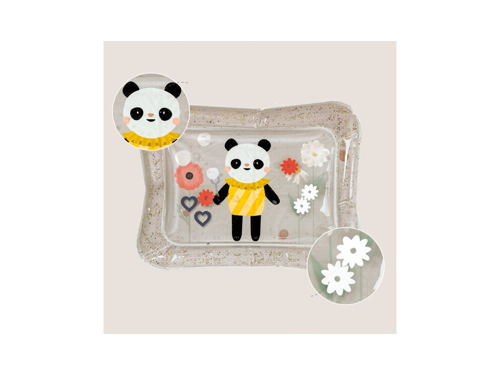 - Vnútri podložky sa pohybujú farebné hračky a trblietky, ktoré podporujú zvedavosť a dlhšie sústredenie