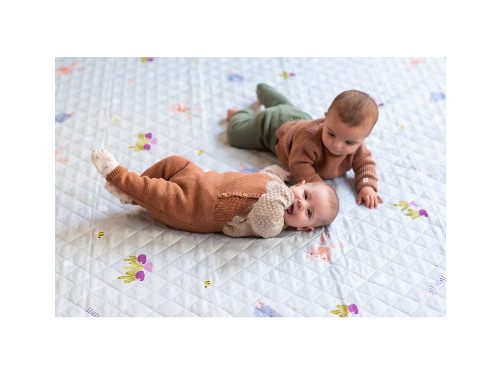 Mäkká, extra veľká hracia deka s vodeodolnou spodnou stranou je ideálna pre použitie vonku. Deka ponúka dostatok priestoru pre rodinný piknik aj pre hranie rodičov s dieťaťom. Na prenášanie sa deka ľahko zloží do tvaru tašky s držadlom.