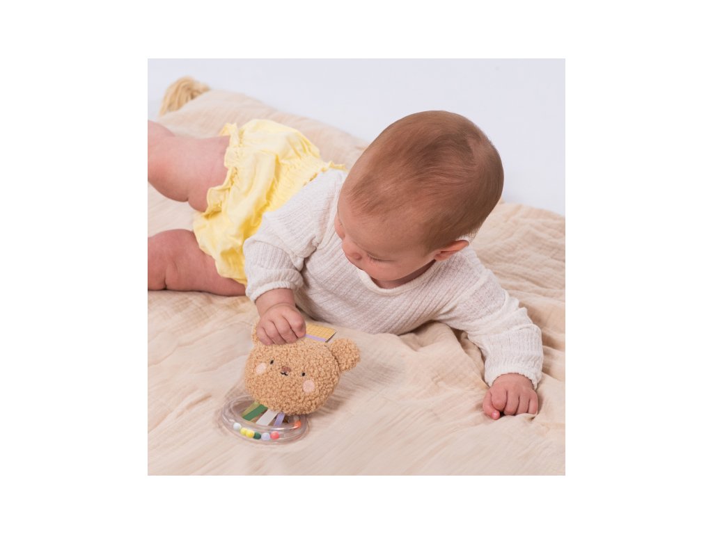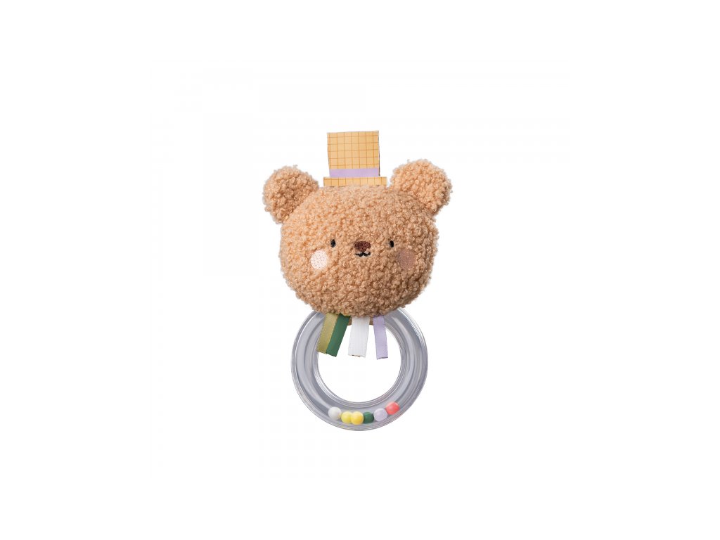 Hrkálku tvorí mäkká plyšová hračka v tvare rozkošného medvedíka Brendona a priehľadný plastový krúžok naplnený farebnými korálkami. Rôzne tvary a povrchy hračky podnecujú dieťa k skúmaniu rukami aj ústami a pomáhajú rozvíjať jemnú motoriku a zmysly dieťaťa.