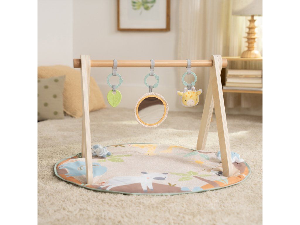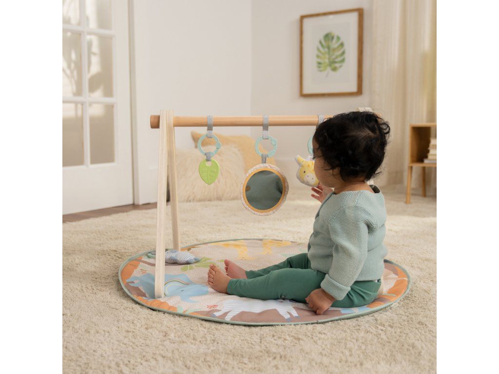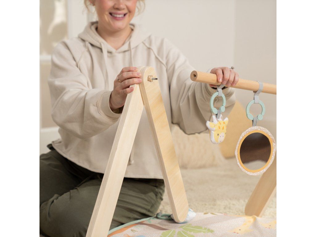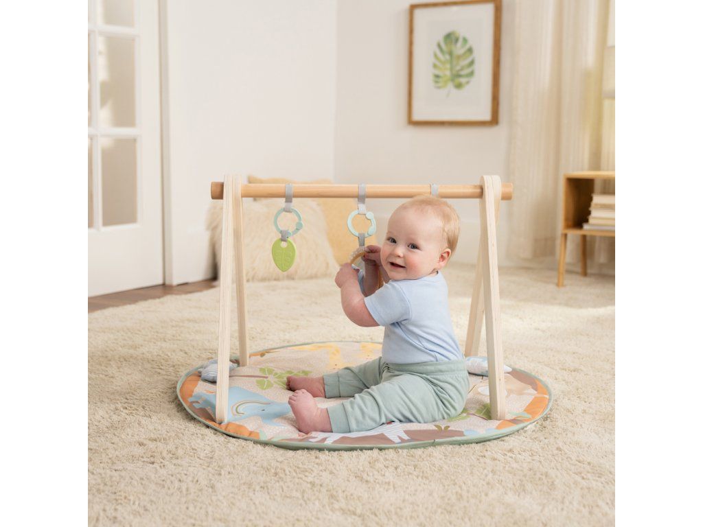 Vytvorte vášmu bábätku bezpečné a hravé prostredie na podložke, ktorá rastie spolu s ním! Táto deka na hranie Wonder & Wood™ ponúka tri fázy hry: ležanie, čas na brušku a v sede. Navyše moderný drevený dizajn s A – rámom sa hodí do každého interiéru a zložíte ho bez náradia – ideálny na doma aj na cesty. Všetky hračky sú navrhnuté pre rozvoj zmyslov, poznávanie tvarov, textúr a zvukov. Vďaka C-krúžkom ich ľahko odpojíte a pripevníte na kočík, autosedačku alebo stoličku. Ideálna ako darček na baby shower, narodeniny či len tak pre každodenné pohodlie.Vlastnosti: