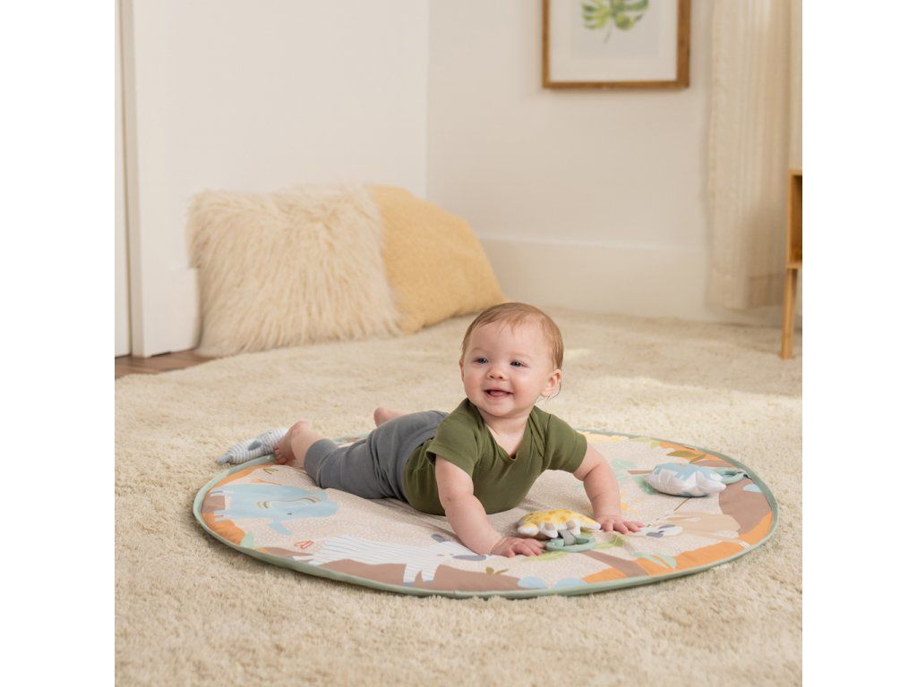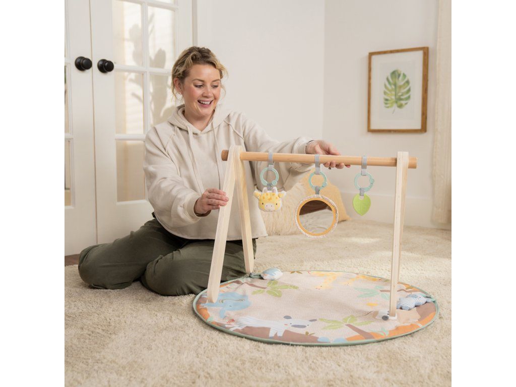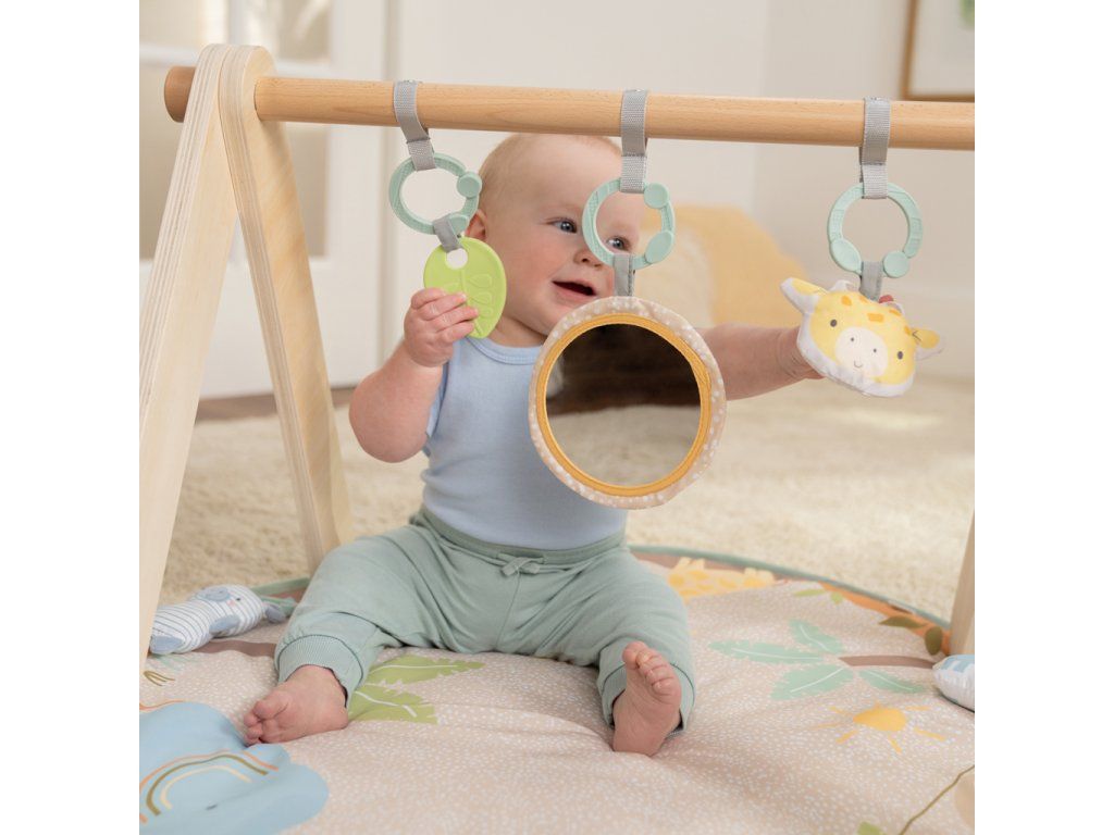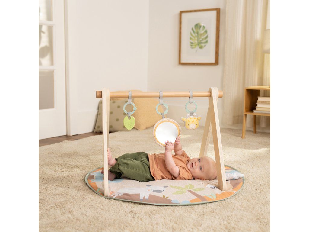 Vytvorte vášmu bábätku bezpečné a hravé prostredie na podložke, ktorá rastie spolu s ním! Táto deka na hranie Wonder & Wood™ ponúka tri fázy hry: ležanie, čas na brušku a v sede. Navyše moderný drevený dizajn s A – rámom sa hodí do každého interiéru a zložíte ho bez náradia – ideálny na doma aj na cesty. Všetky hračky sú navrhnuté pre rozvoj zmyslov, poznávanie tvarov, textúr a zvukov. Vďaka C-krúžkom ich ľahko odpojíte a pripevníte na kočík, autosedačku alebo stoličku. Ideálna ako darček na baby shower, narodeniny či len tak pre každodenné pohodlie.Vlastnosti: