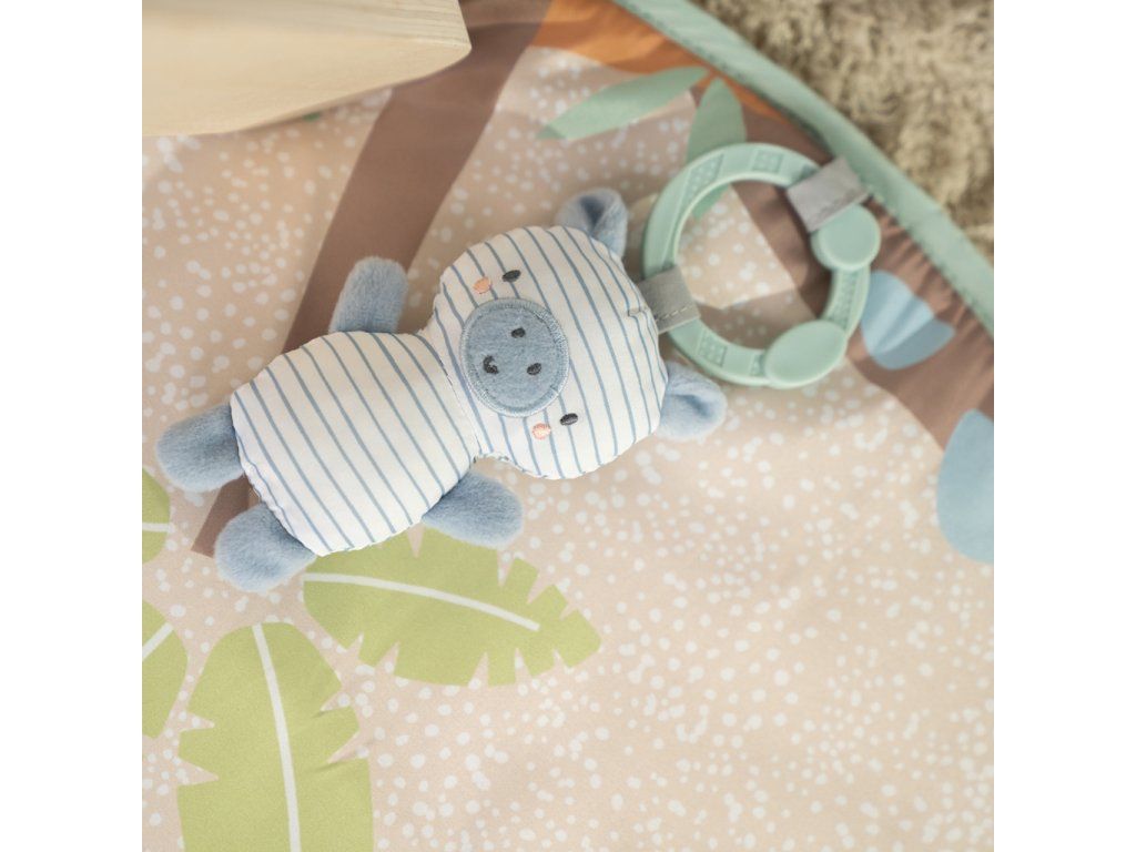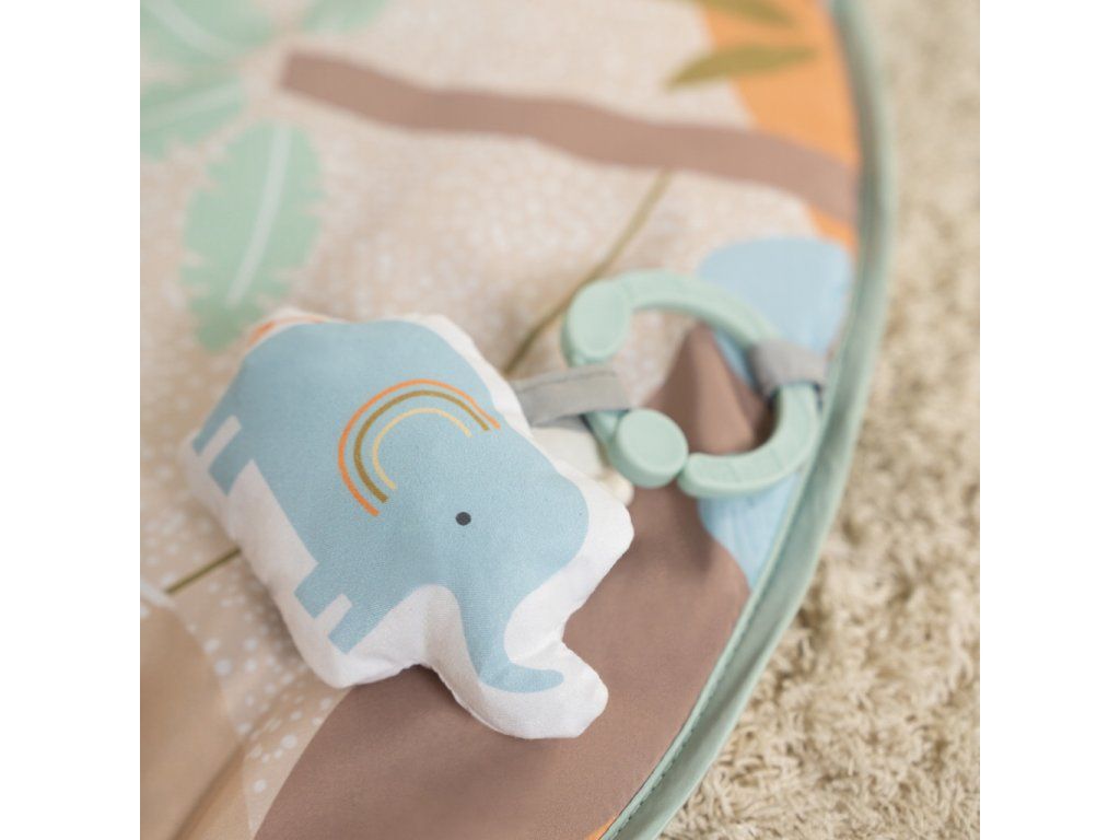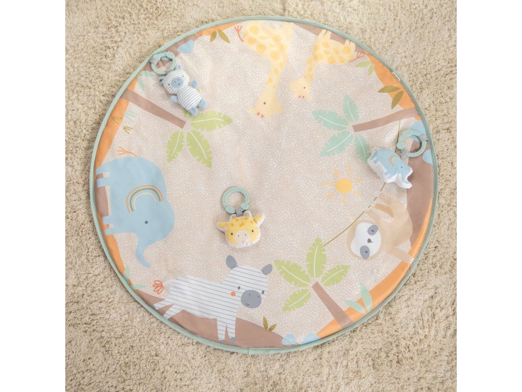 - Jednoduché čistenie: podložku možno utrieť, hračky sú látkové