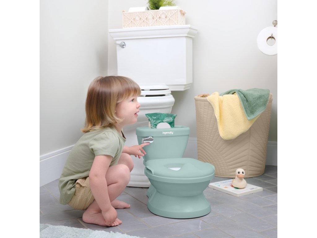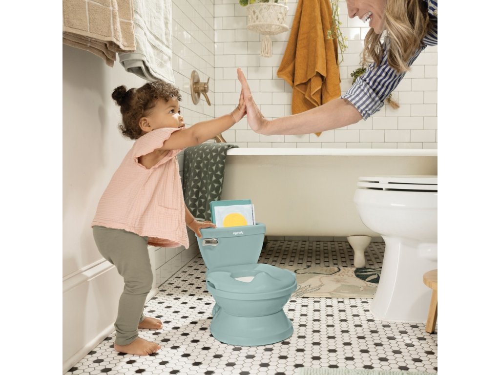 INGENUITY Toaleta detská so zvukom 2 v 1 Summer My Size Potty PRO.Nočník je navrhnutý tak, aby vyzeral ako skutočný záchod pre dospelých. V roku 2023 v súťaži Best of the Bump Awards bol nočník označený ako najlepšia toaleta a nočník na trénovanie .