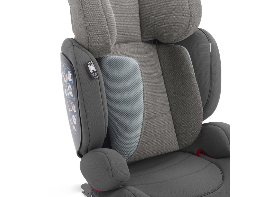Autosedačka s integrovanou opierkou chrbta je vybavená konektormi ISOFIX pre jednoduchú montáž do auta pomocou ukotvovacích bodov. Môže byť inštalovaná aj v autách, ktoré nie sú ISOFIXEM vybavené. Polohovacie ergonomické sedadlo s penovou vložkou zaručuje pohodlnú, uvoľnenú a maximálne bezpečnú cestu. Nastavenie výšky opierky chrbta do 5 pozícií súčasne nastavuje šírku opierky chrbta. Autosedačka je vybavená bočnou ochranou a vložkami EPS pre väčšiu ochranu v prípade bočného nárazu.