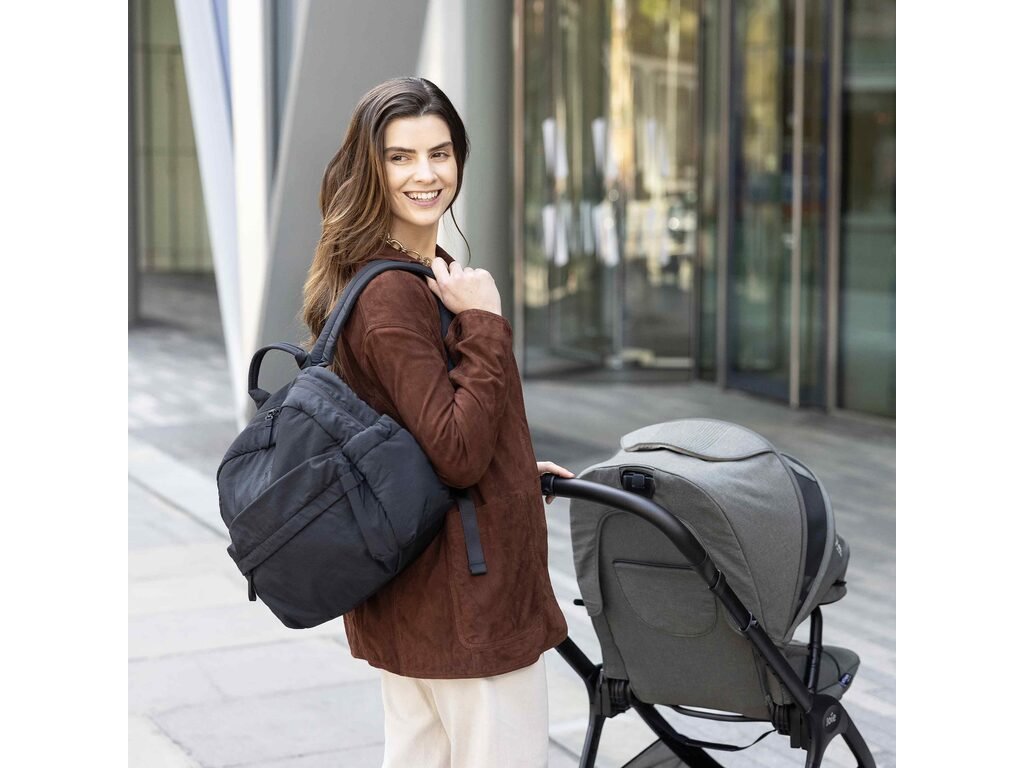 Súčasťou balenia je umývateľná prebaľovacia podložka na prebaľovanie na cestách. Predné vrecko na zips uľahčuje prístup k veciam, ktoré chcete mať vždy po ruke. Materiál odpudzuje vodu a chráni obsah batohu aj pri nepriaznivom počasí.