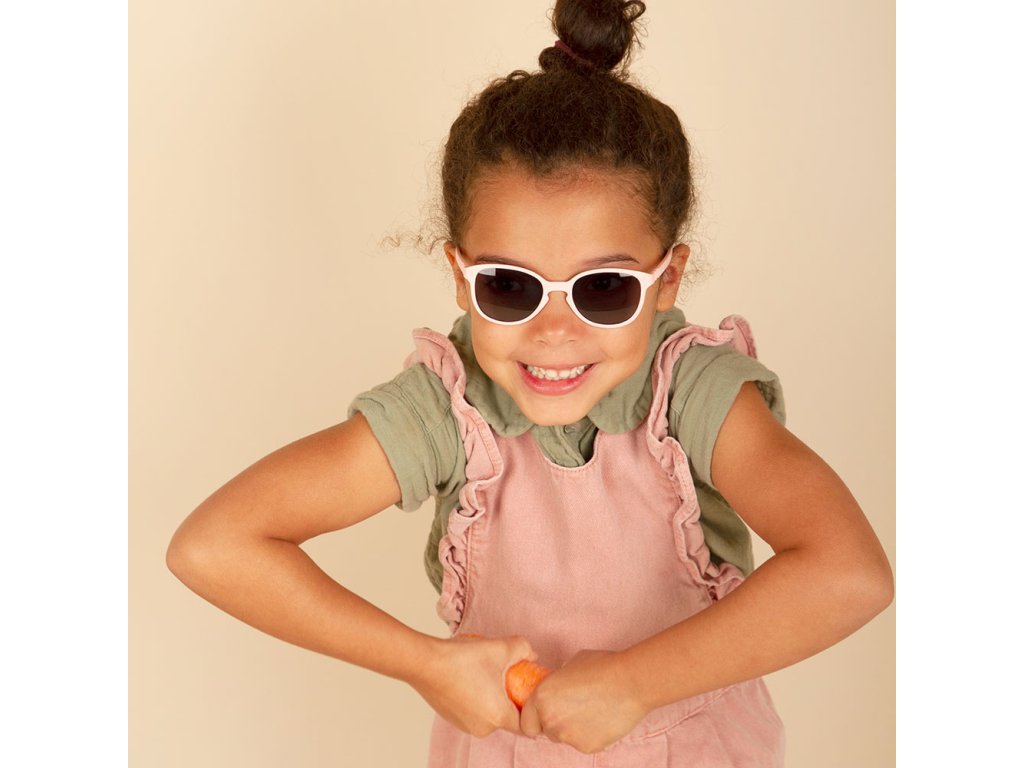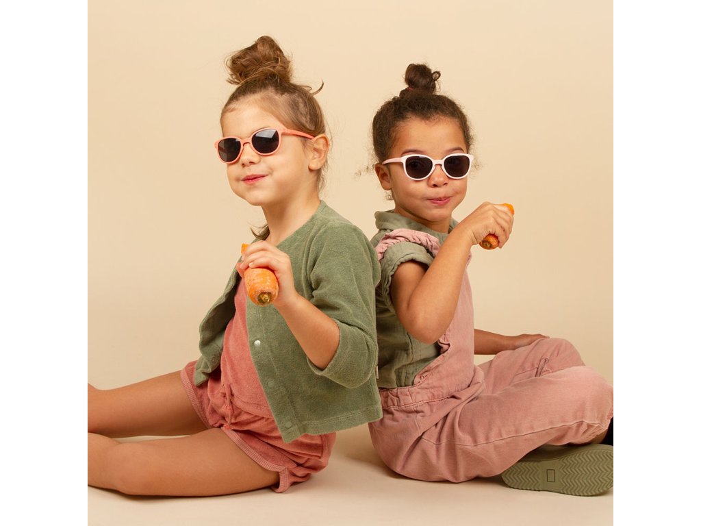 Prémiové slnečné okuliare vyvinuté francúzskymi odborníkmi špeciálne pre malé deti. Sú jedinečné vďaka nerozbitnému, flexibilnému, extra ľahučkému rámu, ktorý netlačí za uškami ani na nose. Poskytujú tú najvyššiu ochranu UV filtrov spolu s filtrom modrého svetla v kvalitných polykarbonátových sklách. Dokonalá ochrana a dokonalý dizajn aj pre tie najmenšie deti. Extra ochrana 100% UVA, UVB a UVC filter, kategória 3 odolné polykarbonátové sklá (kvalitnejší filter ako akrylové sklá) novinka – Blue Blocker – filter škodlivého modrého svetla dostatočná veľkosť skiel, aby zatienila celé okolie očí certifikované podľa európskych noriem EN ISO 12312-1:2013/A1:2015 Extra bezpečnosť nerozbitný ohybný rám – deti bočnice nezlomia ani nevykrútia bez nebezpečných pántov a skrutiek, ktoré znamenajú nebezpečenstvo pri úrazoch Extra pohodlie ultra ľahký a flexibilný rám bočnice tenké a tvarované, aby netlačili za uškami odnímateľná gumička udrží okuliare správne nasadené Rešpekt k prírode plne recyklovateľné nerozbitné = dlhá životnosť praktický obal „CARRY-ME“ z recyklovaného papiera Doplnky v balení: prispôsobiteľný popruh vrecúško na okuliare vhodné aj na čistenie okuliarov Možnosť vloženia dioptrických skiel, informujte sa u Vášho optika. Veľkosť 1-2 roky: Šírka okuliarov: 96 mm Výška okuliarov: 35 mm Dĺžka stránic: 125 mm Veľkosť 2-4 roky: Šírka okuliarov: 102 mm Výška okuliarov: 38 mm Dĺžka stránic: 125 mm Veľkostnú tabuľku KiETLA nájdete tu . Detské oči sú na slnko veľmi citlivé a zraniteľné. Šošovka ešte nie je dostatočne vyvinutá, aby chránila sietnicu ako u dospelých. Šošovka sa vyvíja až do veku 12 rokov dieťaťa. Dovtedy veľká časť UV žiarenia prechádza až k sietnici a spôsobuje poškodenia, ktoré sa vekom kumulujú a môžu sa prejaviť až v dospelosti. Preto je veľmi dôležité chrániť oči detí už od malička.Dodatočné parametre