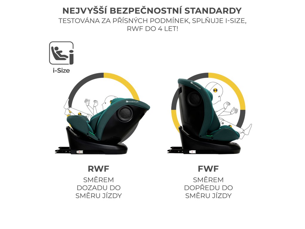 I-GROW navyše umožňuje prepravu dieťaťa v protismere jazdy (RWF) až do 4 rokov! RWF je najbezpečnejšia poloha na prepravu detí – pri čelnom náraze je až 5× bezpečnejšia. Autosedačka ochráni dieťa v každej situácii vďaka 12-stupňovému nastaveniu opierky hlavy a 5-stupňovému nastaveniu sklonu operadla. Ide o autosedačku, ktorá kladie maximálny dôraz na bezpečnosť.
