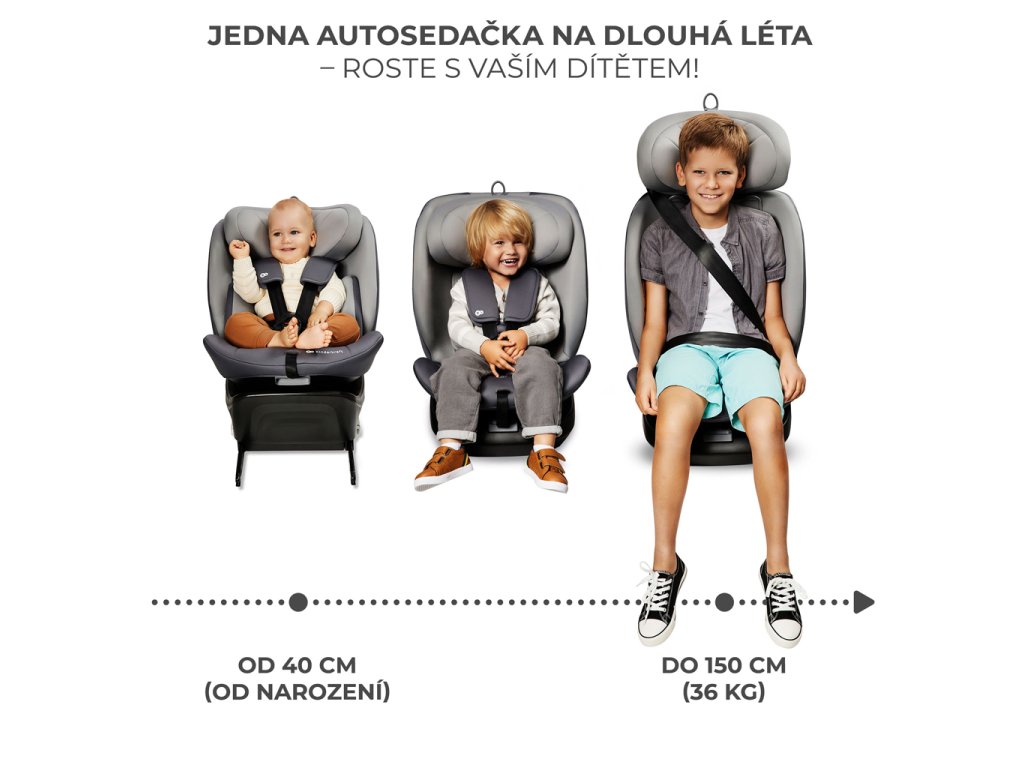 Autosedačka I-GROW vás bude sprevádzať na cestách od narodenia až približne do 12 rokov (36 kg). Stačí si kúpiť jeden produkt – a ten zabezpečí dieťaťu ochranu počas celej doby používania autosedačky.