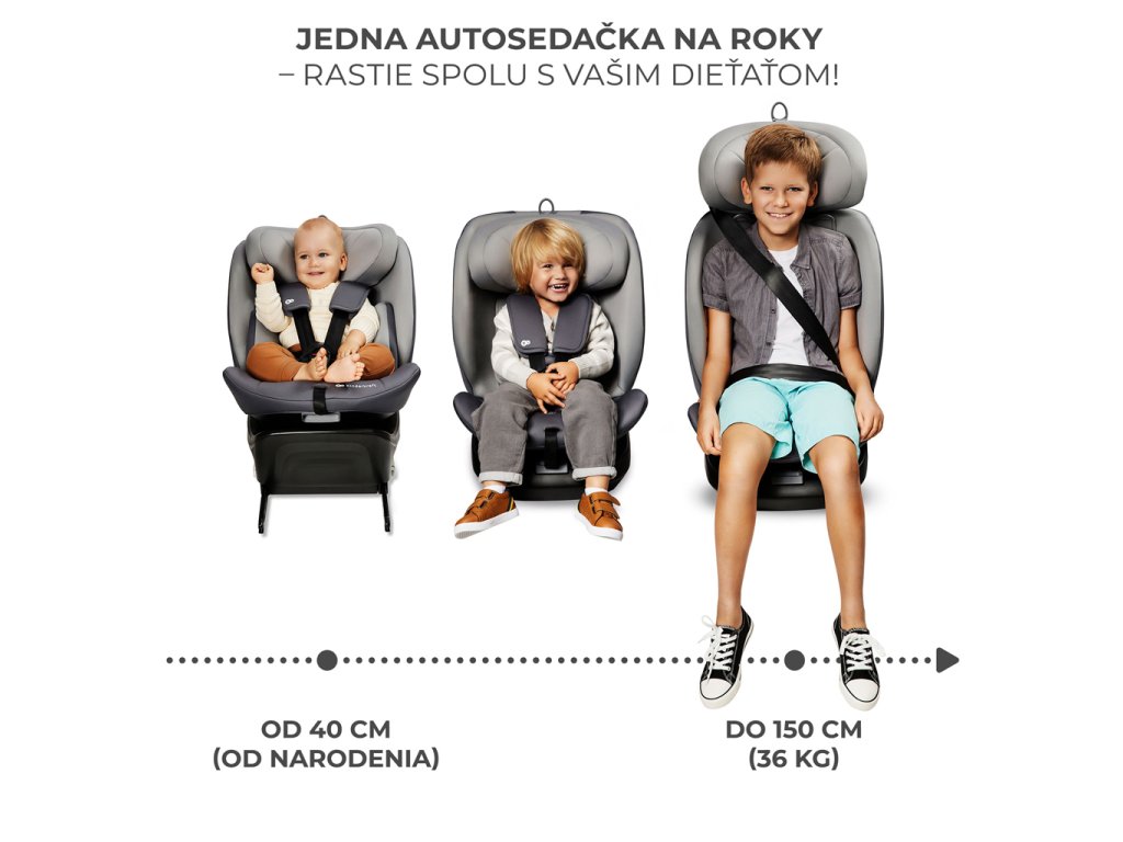 Autosedačka I-GROW vás bude sprevádzať na vašich cestách od narodenia dieťaťa až do približne 12 rokov (36 kg)! Kúpite si jeden výrobok a ten ochráni vaše dieťatko počas celého obdobia cestovania v autosedačke.